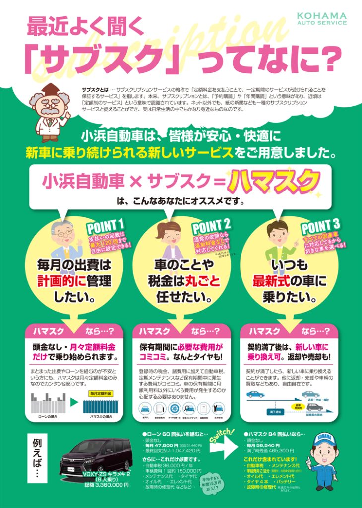 ハマスク 小浜自動車の新しい車購入方法:小浜自動車×サブスク=ハマスク